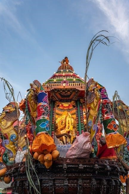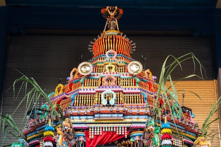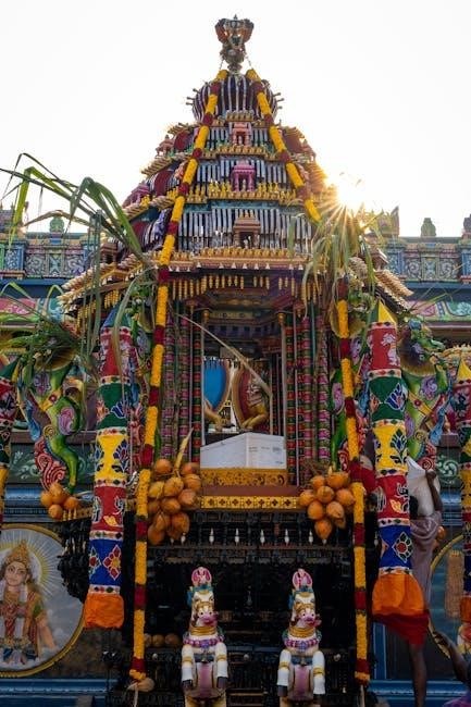 This practice invites positive energy, abundance, and auspiciousness into one’s life. The chants invoke divine blessings, strengthening the connection to higher consciousness. Utilizing the Tamil PDF allows for focused intention and amplified energetic benefits, creating a harmonious and revitalized atmosphere.